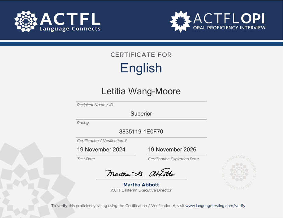 Hello! My name is Letitia Wang-Moore. I am the founder of Lighthouse Education Consulting, an educational consultant, and a Chinese and English language instructor. I am a native Chinese speaker who grew up in Taiwan and have lived in the US for more than a decade. With over 20 years of experience in education, I have dedicated my career to supporting families in overcoming educational challenges, cultural differences, and promoting bilingual development.